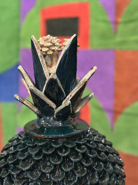 Piña esmaltada 40 cm, verde esmeralda