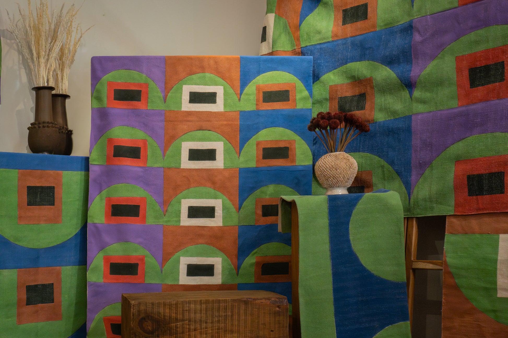 Mezclando tejidos, pigmentos orgánicos, técnica de bloque y pintando a mano cada una de estas piezas, hacemos que tus paredes, pisos y espacios favoritos cobren vida en los momentos importantes.