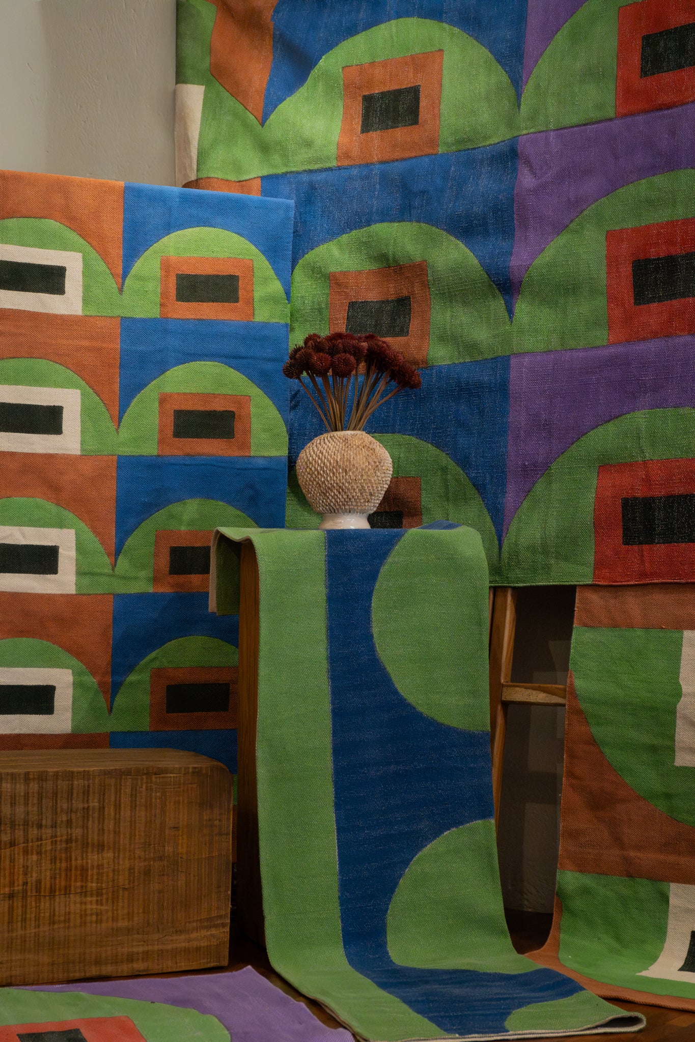 Tejidos a mano en algodón prelavado, nuestra primera Colección Hecha en México pretende acompañar los espacios dando una sensación de calidez y armonía con sus mezclas de geometría y sus bailes de pantones.